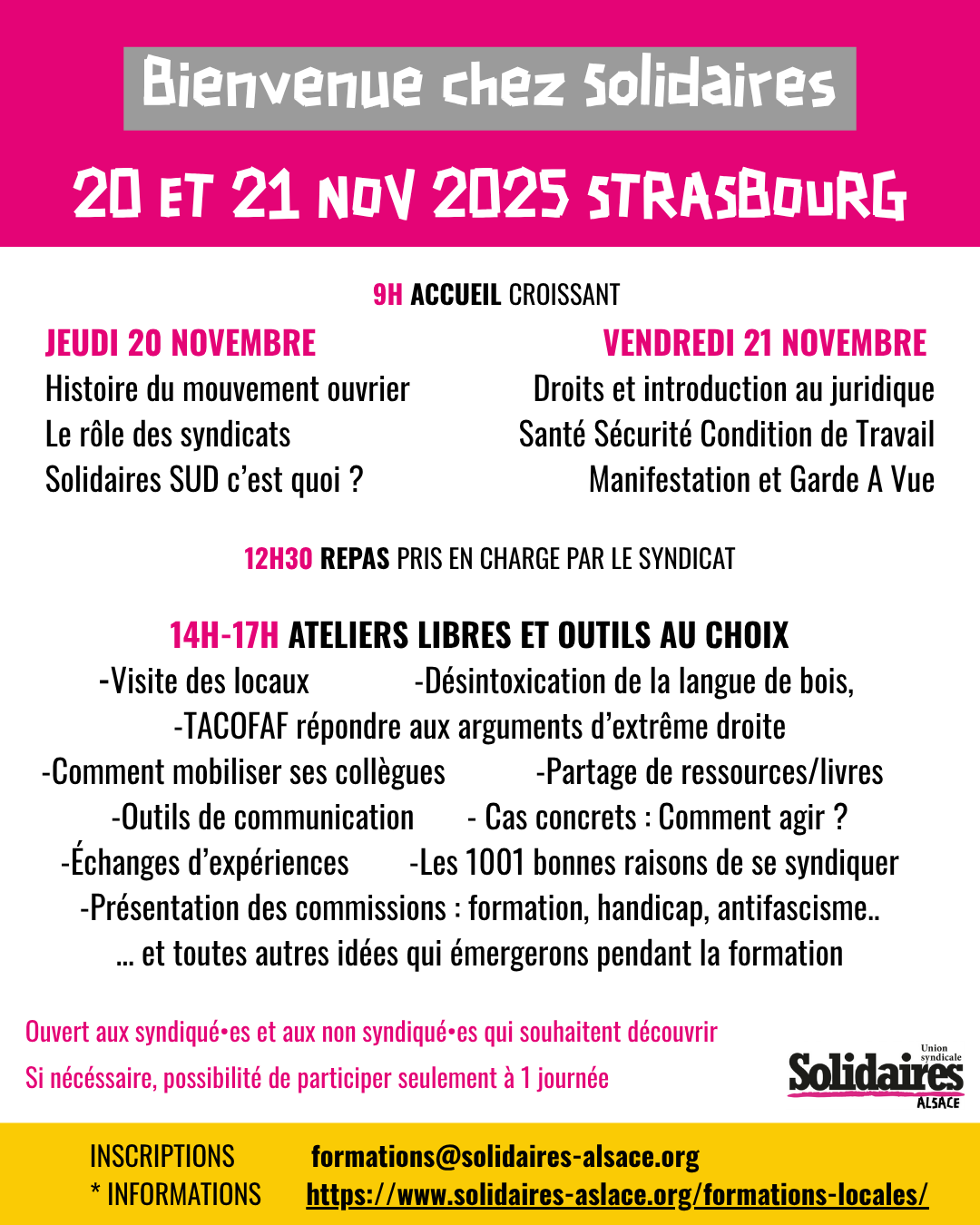 Formation Syndicale Bienvenue chez Solidaires Les 20 et 21 novembre 2025 à Strasbourg PROGRAMME Jeudi...