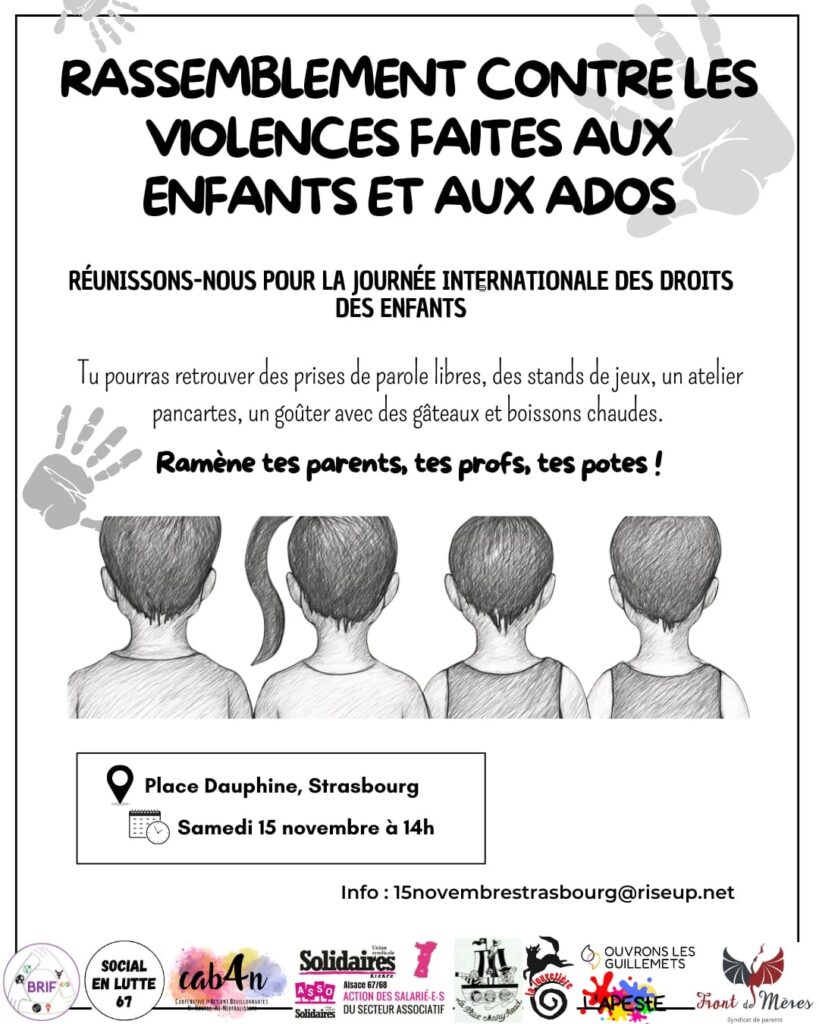 Pour défendre leurs droits, le collectif enfantiste appelle à se mobiliser et à rejoindre les manifestations organisées dans de nombreuses villes en France, le 15 novembre. L’Union syndicale Solidaires est signataire de cet appel à mobilisation.