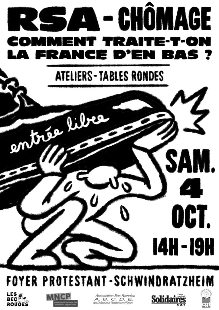 Loin des clichés et des a priori, cet événement ouvert à tous·tes vise à faire prendre conscience de la réalité et de la diversité des conditions et des chemins de vie dans lesquels se trouvent les personnes au chômage et au RSA. À travers des échanges, des ateliers d’éducation populaire et une table ronde. L’idée est de se rencontrer et de se poser des questions ensemble sur notre modèle social, son évolution actuelle, comment résister aujourd’hui et vers quel futur on souhaite aller.